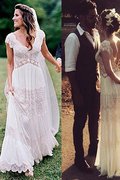 Abito da Sposa Coda A Strascico Corto Naturale in Pizzo Radiosa Fuori dalla spalla