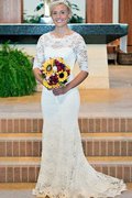 Abito da Sposa Coda A Strascico Corto Naturale in Pizzo Radiosa Fuori dalla spalla