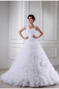 Abito da Sposa Naturale Senza Maniche Radiosa in Pizzo in Tulle