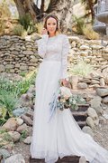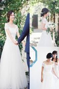 Abito da Sposa con Bottone Corto Senza Maniche decorato in Pizzo