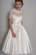 Abito da Sposa Naturale Coda A Strascico Corto Radiosa in Raso con Maniche Lunghe