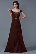 Abito da Sera Spazzola Treno in Chiffon V-Scollo Naturale A-Line