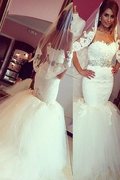 Abito da Sposa Allacciato Coda A Strascico Cappella Sirena Lungo Cuore