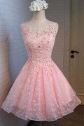 Abito Homecoming A-Line in Pizzo in Pizzo decorato Al Ginocchio