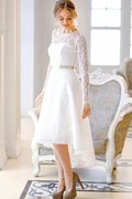 Abito da Sposa Naturale Coda A Strascico Corto Radiosa in Raso con Maniche Lunghe