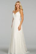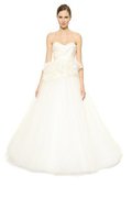 Abito da Sposa Naturale in Organza Spazzola Treno con Maniche Lunghe V-Scollo