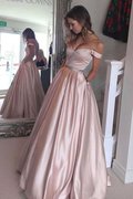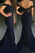 Abito da Sera Naturale Fuori dalla spalla in Raso A Terra con Maniche Lunghe
