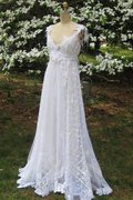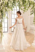 Abito da Sposa Coda A Strascico Corto Naturale in Pizzo Radiosa Fuori dalla spalla