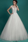 Abito da Sposa con Manica Corte decorato con Piega Tondo Semplice