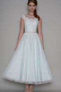 Abito da Sposa in Pizzo con Applique Sotto Ginocchio in Pizzo con Fiocco