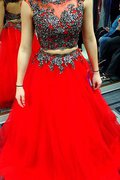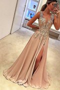Abito da Ballo Spazzola Treno con Spacco Davanti Cerniera con Perline Naturale