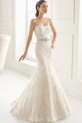 Abito da Sposa in Tulle Sirena in Pizzo Coda A Strascico Corto V-Scollo