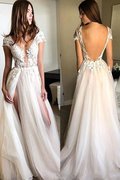 Abito da Sera in Tulle Naturale Spazzola Treno Principessa A-Line