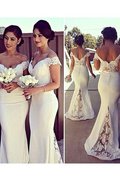 Abito da Sera Spazzola Treno in Chiffon V-Scollo Naturale A-Line