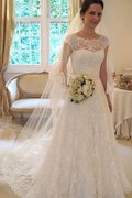 Abito da Sposa Senza Maniche Naturale Sirena Spazzola Treno in Pizzo